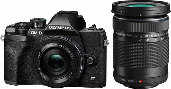 Aparat Olympus OM-D E-M10 Mark IV Czarny + 14-42mm f/3.5-5.6 + 40-150mm f/4-5.6 (V207134BE000)