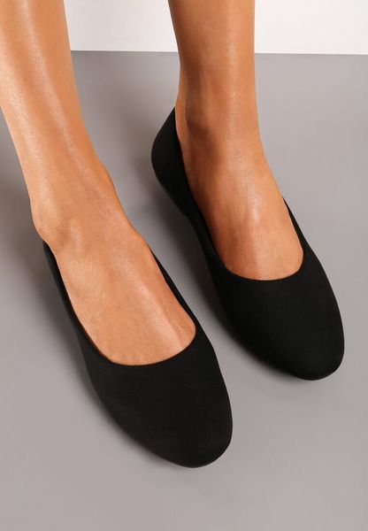 Czarne Klasyczne Balerinki z Ekozamszu z Okrągłym Noskiem Harneli