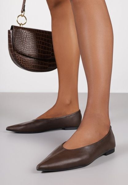 Brązowe Balerinki Vices ze Szpiczastym Noskiem i Wkładką ze Skóry Naturalnej Belvisse