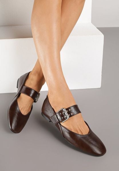 Brązowe Balerinki Vices ze Skórzaną Wkładką i Szerokim Paskiem ze Sprzączką Rilucea