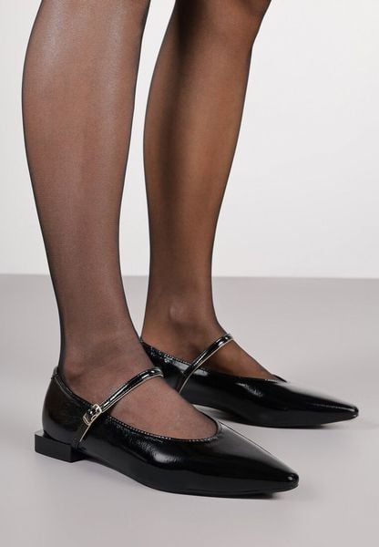 Czarne Balerinki Vices z Paskiem z Klamerką i Skórzaną Wkładką Quane