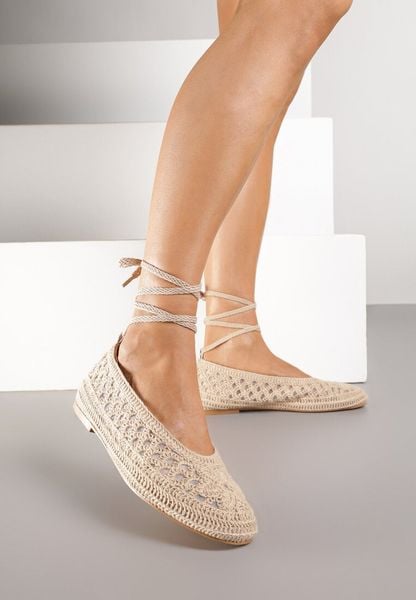 Beżowe Balerinki Vices z Szydełkową Cholewką i Wiązaniem Wokół Kostki Ernelia