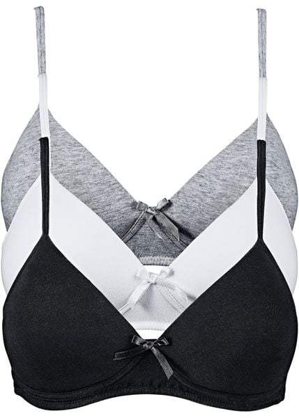 Praktyczne biustonosze usztywniane bez fiszbinów. W komplecie 3 biustonosze bez fiszbinów, z lekko wyściełanymi miseczkami. Szew pod miseczkami zapewnia stabilne podtrzymywanie biustu.