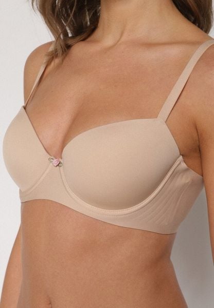 Beżowy Gładki Biustonosz o Klasycznym Fasonie Amanei