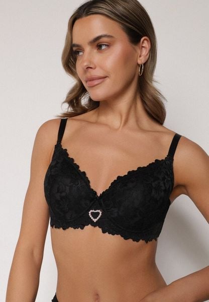 Czarny Biustonosz z Koronką i Sercem z Cyrkonii Coratune