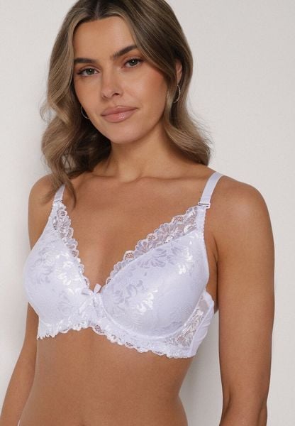 Biały Klasyczny Biustonosz Zdobiony Koronką Idarodia