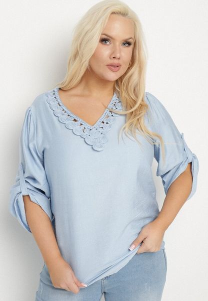 Jasnoniebieska Bluzka z Bawełną i Ozdobnym Haftem Edirilita