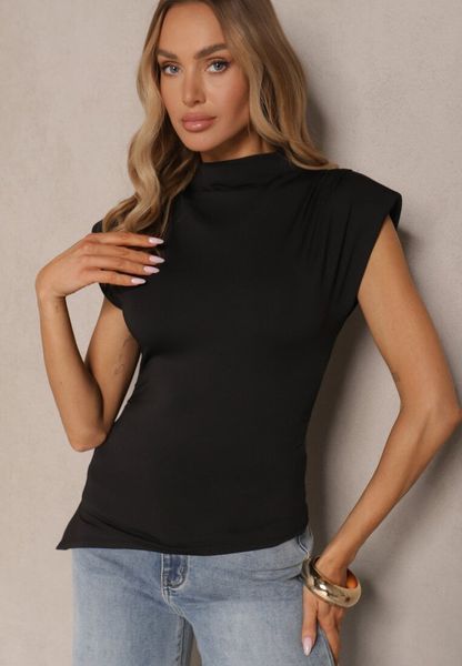 Czarna Satynowa Bluzka z Wiskozą z Usztywnioną Linią Ramion Asidisa