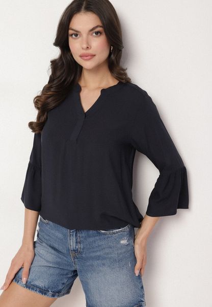 Granatowa Wiskozowa Bluzka z Falbankami przy Rękawach Tialavelle