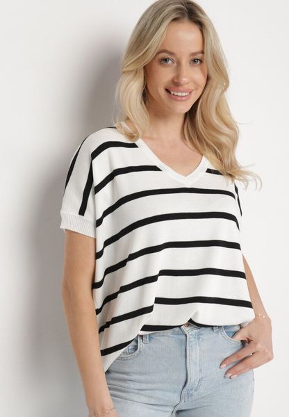 Biała Bluzka o Kroju Nietoperza w Paski Nolvesin