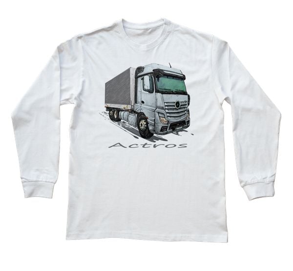 Mercedes-Benz Actros — bluzka z długim rękawem (Rozmiar: XL (dorosła); Kolor koszulki: biały; Rodzaj nadruku: Mercedes-Benz Actros)