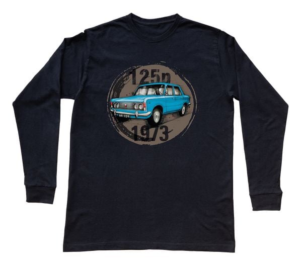 Fiat 125p — bluzka z długim rękawem (Rozmiar: M (dorosła); Kolor koszulki: czarny; Rodzaj nadruku: Fiat 125p)