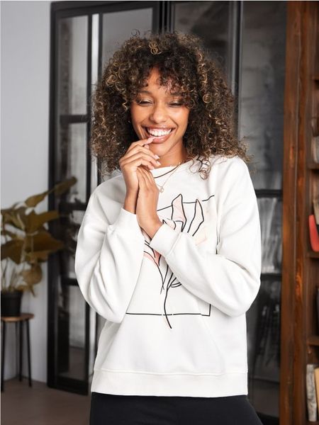 Sinsay – Bluza z haftem – kremowy – długi rękaw,okrągły dekolt,wykończenie ściągaczami,ozdobny haft z przodu