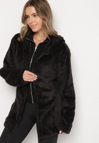 Czarna Futerkowa Bluza z Kapturem i Suwakiem Sinatila