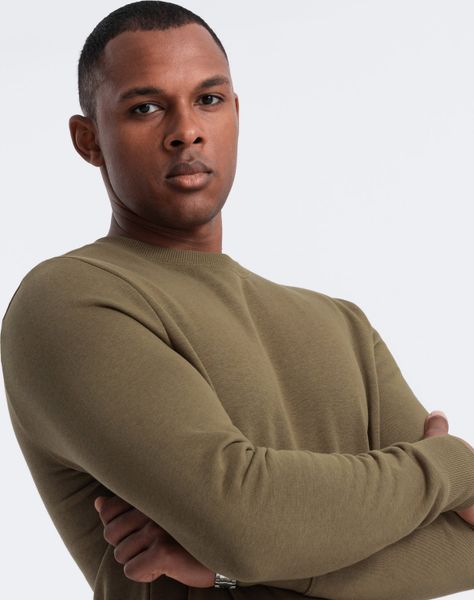 Ombre Bawełniana męska nierozpinana dresowa bluza BASIC oliwkowa V2 OM-SSBN-0159 M