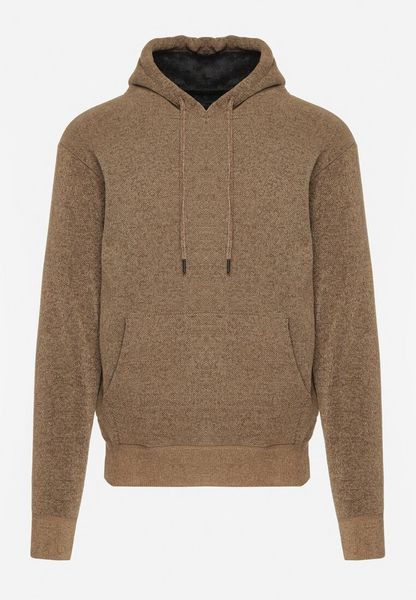 Ciemnobeżowa Ocieplana Bluza z Kapturem z Dzianiny z Wełną Zenime