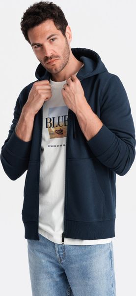 Ombre Bawełniana rozpinana męska bluza dresowa BASIC granatowa V1 OM-SSBZ-0160 M