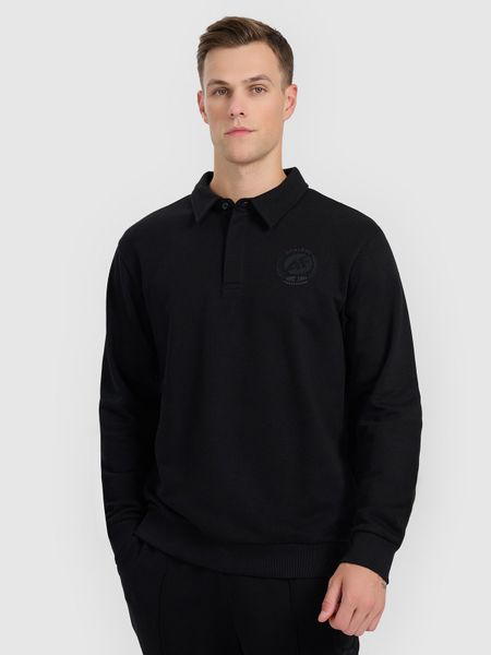 4F Bluza dresowa regular z kołnierzykiem męska – czarna L