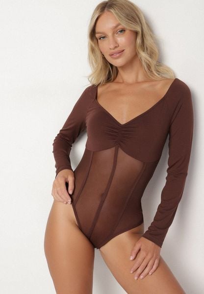 Brązowe Body Vices z Długim Rękawem i Dekoltem w Serek Aleriie