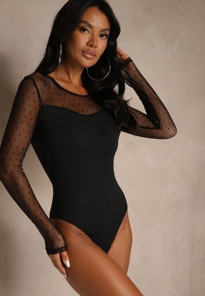 Czarne Body Vices Ozdobione Przezroczystymi Rękawami z Kropkami Hirrne