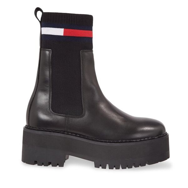 Sztyblety Tommy Jeans Tjw Flatform Chelsea Sock EN0EN02301 Czarny