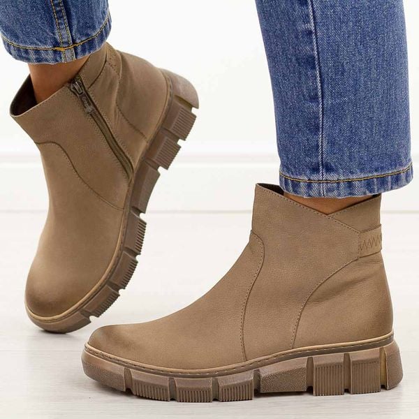 Beżowe skórzane Polskie botki damskie zimowe Gregors 1092