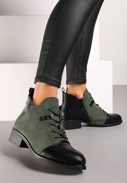 Zielone Płaskie Botki z Kontrastowymi Elementami i Sznurowaniem Lorian