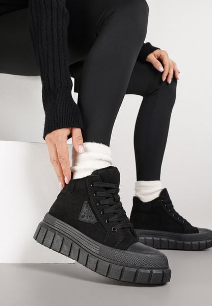 Czarne Botki Vices w Stylu Traperów z Grubą Tłoczoną Podeszwą z Ozdobą Alurriva