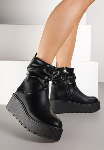 Botki na Koturnie Zdobione Marszczeniem przy Cholewce Tulariel to must-have w szafie każdej modowej entuzjastki! Marszczenie przy cholewce dodaje im niepowtarzalnego charakteru, a zapięcie na suwak ułatwia zakładanie. Idealne na co dzień, będą świetnie wyglądać w połączeniu z ulubionymi jeansami i oversize’owym swetrem. Musisz je mieć! Botki posiadają delikatne ocieplenie.