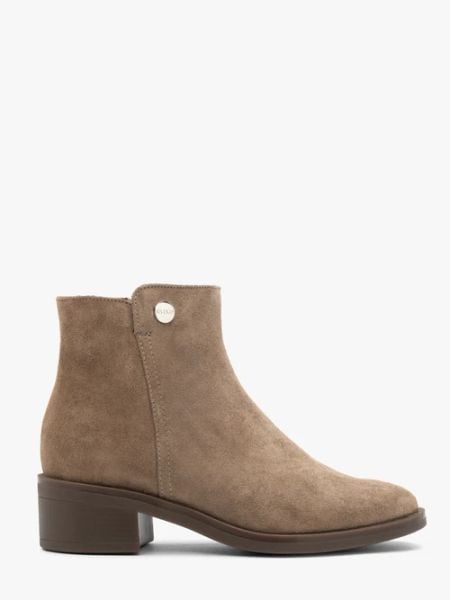 Szarobeżowe botki damskie ze skóry welurowej, ocieplane, z okrągłym noskiem i cholewką za kostkę. Zamek na całej długości ułatwia zakładanie. Obcas 5 cm – szeroki i stabilny, idealny na co dzień. Model z linii Relax, zaprojektowany z myślą o komforcie. Kolor stanowi ciekawą alternatywę dla czerni i beżu – uniwersalny i pasujący na wiele okazji, […]