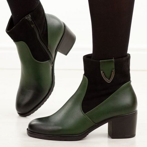 Zielone botki damskie na obcasie M.Daszyński Sa128-39