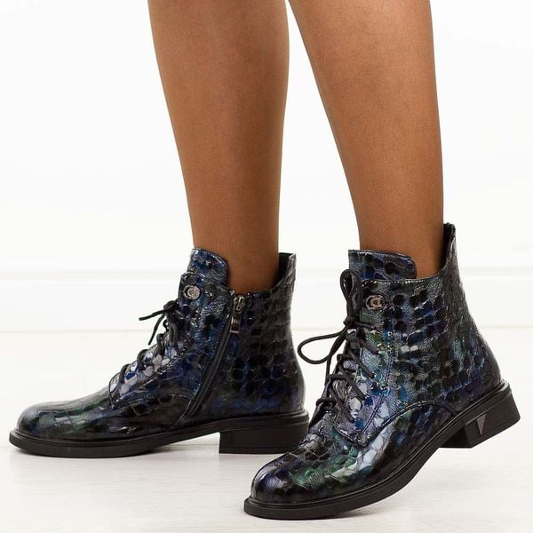 Czarne skórzane botki damskiena chłodną jesień i zimę to eleganckie obuwie, które łączy klasyczny fason z wyjątkowym, nowoczesnym wykończeniem. Cholewka została wykonana z wysokiej jakości skóry naturalnej, której wielobarwna faktura przypomina efektowną skórę krokodyla – dzięki temu botki prezentują się niezwykle stylowo i wyróżniają się na tle tradycyjnych modeli. Buty są sznurowane oraz zapinane na praktyczny […]