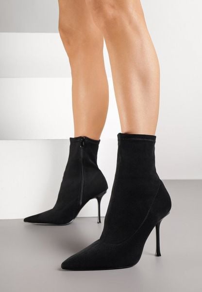 Czarne Dopasowane Botki z Imitacji Zamszu na Szpilce Zarilisse