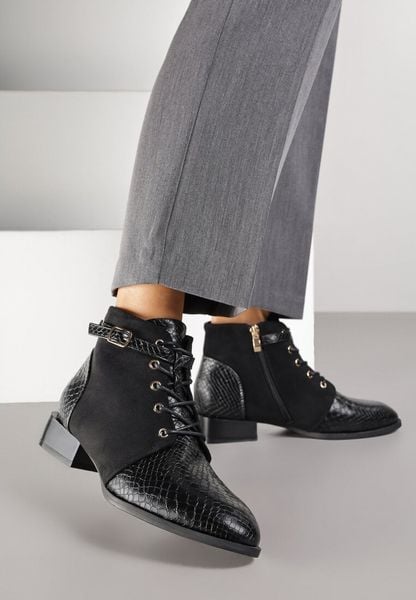Czarne Botki Vices ze Wstawkami Imitującymi Skórę Węża i Sprzączką Gelrina