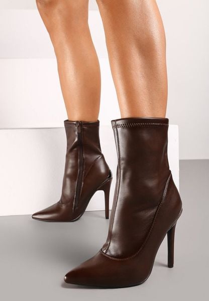 Brązowe Botki na Szpilce z Dopasowaną Cholewką Ivadora