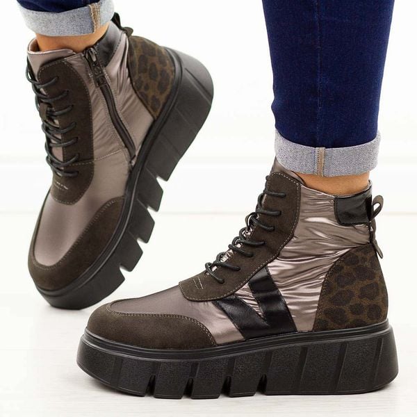 Czekoladowe wysokie botki damskie na platformieto idealne obuwie na chłodną jesień oraz zimę, które łączy w sobie modny design i komfort noszenia. Cholewka wykonana z materiału zamszopodobnego połączonego z innymi materiałami prezentuje się wyjątkowo stylowo, a połączenie sznurowania i zamka błyskawicznego zapewnia wygodę użytkowania oraz idealne dopasowanie do stopy. Wnętrze botków zostało ocieplone miękkim polarem, który […]