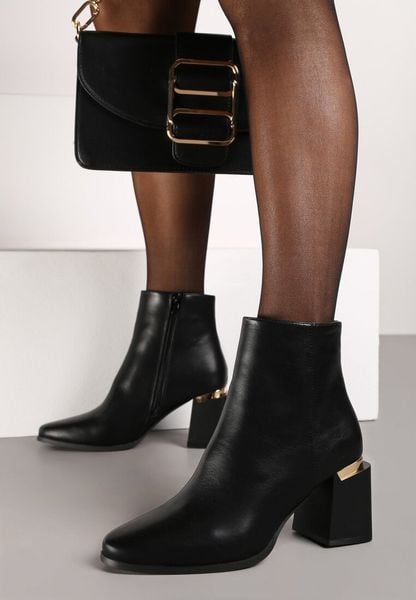 Czarne Botki na Słupku Ozdobione Metaliczną Aplikacją Ittevia