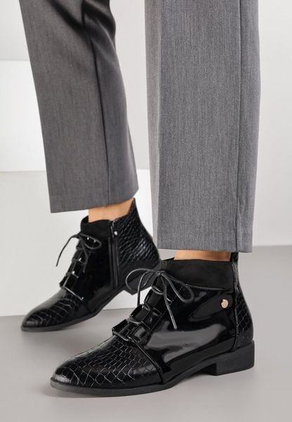 Czarne Eleganckie Botki Vices ze Sznurowaną Cholewką Vlerrie