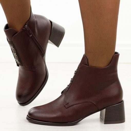 Bordowe botki damskie na obcasie M.Daszyński 2481-9