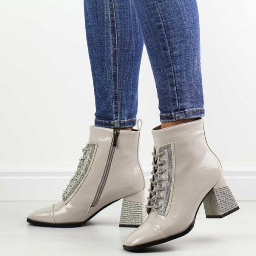 Szare lakierowane botki damskie na słupku DiA 880-022