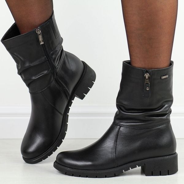 Czarne wysokie skórzane Polskie botki damskie zimowe na traperze Gregors 793 Gruby Spód