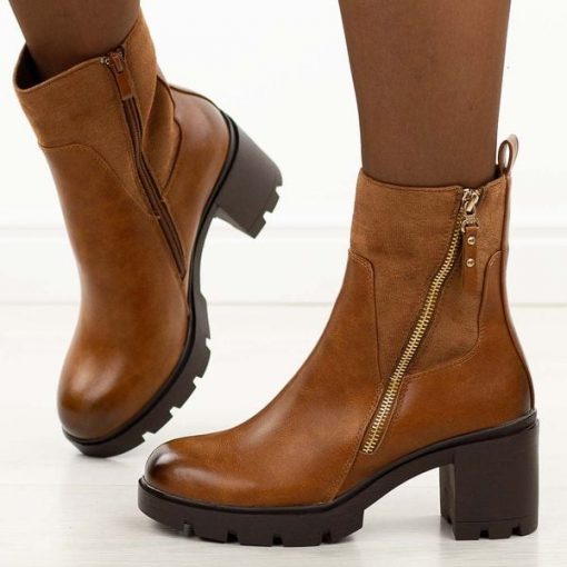 Camelowe botki damskie na obcasieto idealne obuwie na chłodną jesień oraz zimę, łączące elegancję z komfortem. Cholewka wykonana z materiału skóropodobnego nadaje butom stylowy wygląd, a solidny suwak zapewnia wygodne zakładanie i zdejmowanie. Dodatkowym atutem jest ozdobny suwak po boku, który dodaje nowoczesnego charakteru i wyróżnia te botki na tle innych modeli. Wnętrze botków oraz wkładka […]