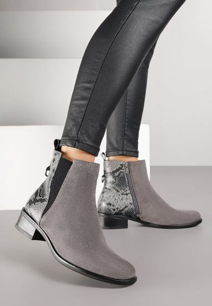 Szare Botki w Stylu Sztybletów z Metaliczną Aplikacją Verinette