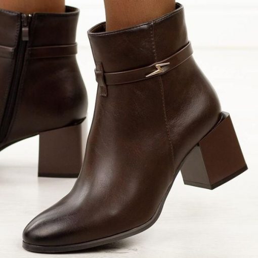 Brązowe botki damskie na obcasie M.Daszyński Sa217-18