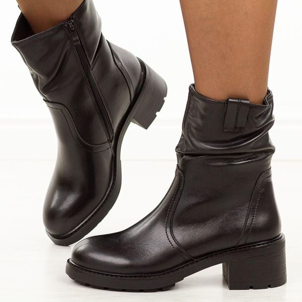 Czarne skórzane botki damskiena chłodną jesień oraz zimę to idealne połączenie wygody, funkcjonalności i modnego wyglądu. Cholewka wykonana została z wysokiej jakości skóry naturalnej, co gwarantuje trwałość, odporność na warunki atmosferyczne oraz elegancki wygląd przez wiele sezonów. Dzięki wysokiej cholewce obuwie dobrze chroni nogę, zapewniając stabilność i komfort noszenia. Botki są niezwykle praktyczne – posiadają zapięcie […]