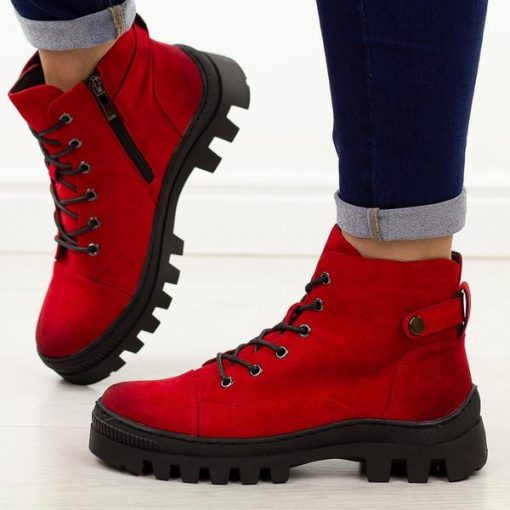 Czerwone botki damskieto doskonały wybór na chłodną jesień oraz zimę, łączący wygodę, funkcjonalność i modny wygląd. Wykonane z wysokiej jakości materiału zamszopodobnego, prezentują się elegancko i pasują do wielu codziennych oraz bardziej eleganckich stylizacji. Zapinane na suwak oraz dodatkowo sznurowane, gwarantują idealne dopasowanie do stopy i komfort noszenia. Okrągły nosek sprawia, że buty są wygodne […]