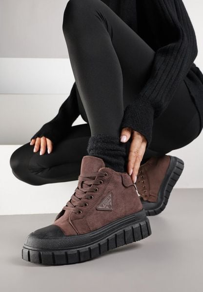 Brązowe Botki Vices w Stylu Traperów z Grubą Tłoczoną Podeszwą z Ozdobą Alurriva