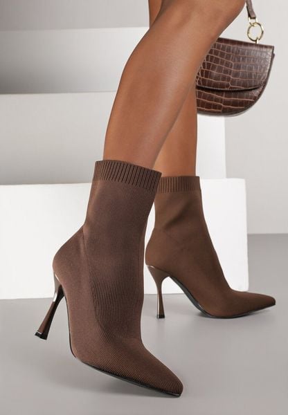 Brązowe Botki Vices na Szpilce ze Skarpetową Cholewką Nalumela