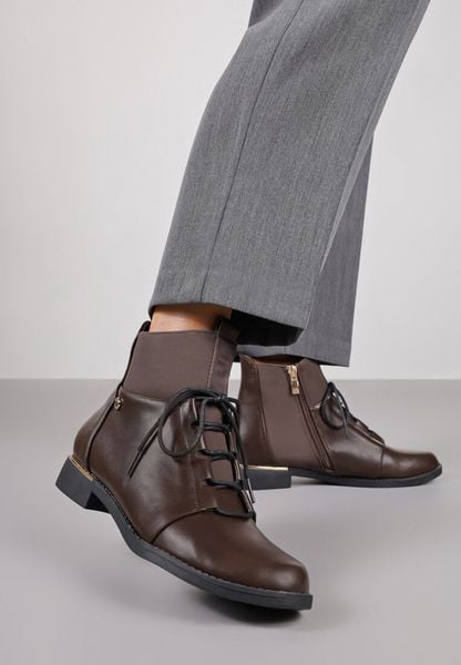 Brązowe Sznurowane Botki Vices z Elastycznymi Wstawkami Ganddie
