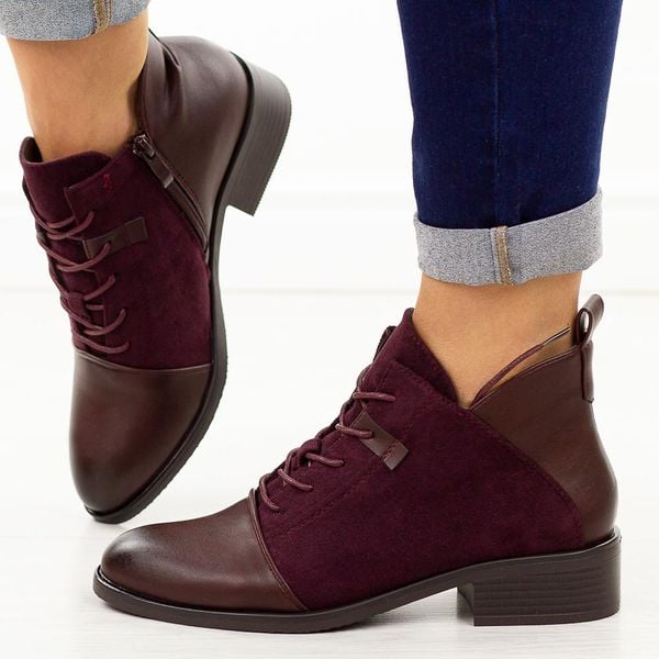 Bordowe płaskie botki damskie M.Daszyński 2458-7
